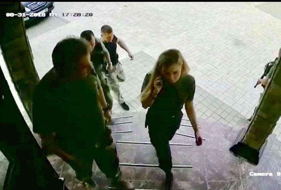 Как видно на кадрах, Захарченко заходил в кафе первым, следом шел его охранник Вячеслав Доценко ("Славян"). Далее камера запечатлела теперь уже бывшего "министра доходов" Александра Тимофеева ("Ташкента") и "общественницу" Наталью Волкову, которые выжили после взрыва.
