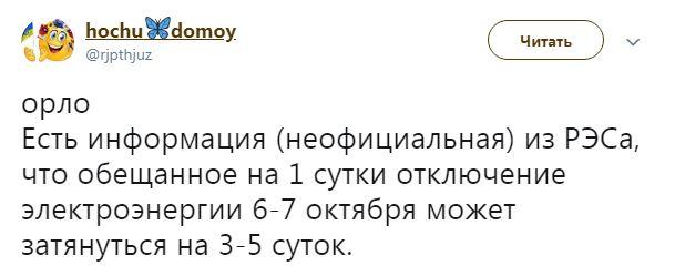 По информации "властей", на момент отключения электроэнергии важная информация (с указанием региона) будет доводиться через радиостанцию 103,6 FM.