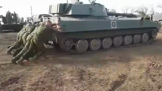 "Тяжко оккупантам в Донецке. Приходится САУ с толкача заводить", - подписал он ролик.