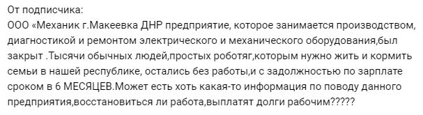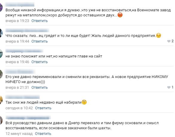 "Может есть хоть какая-то информация по поводу данного предприятия, восстановиться ли работа, выплатят долги рабочим?" - задают вопрос в одном из местных пабликов.