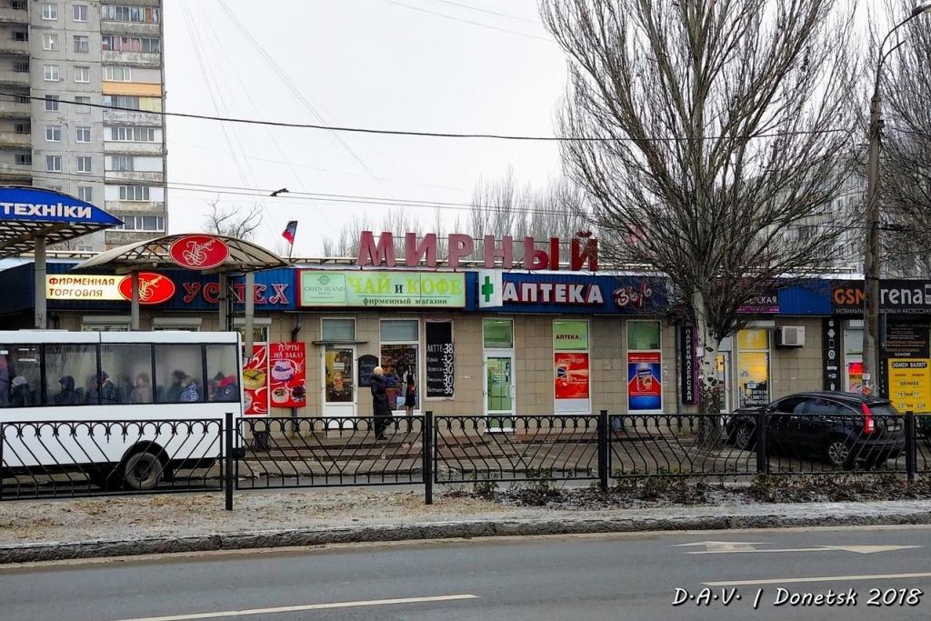 На снимках запечатлена набережная реки Кальмиус, различные магазины и торговые центры. Большинство фото снято в Киевском районе Донецка, передает Час Пик.