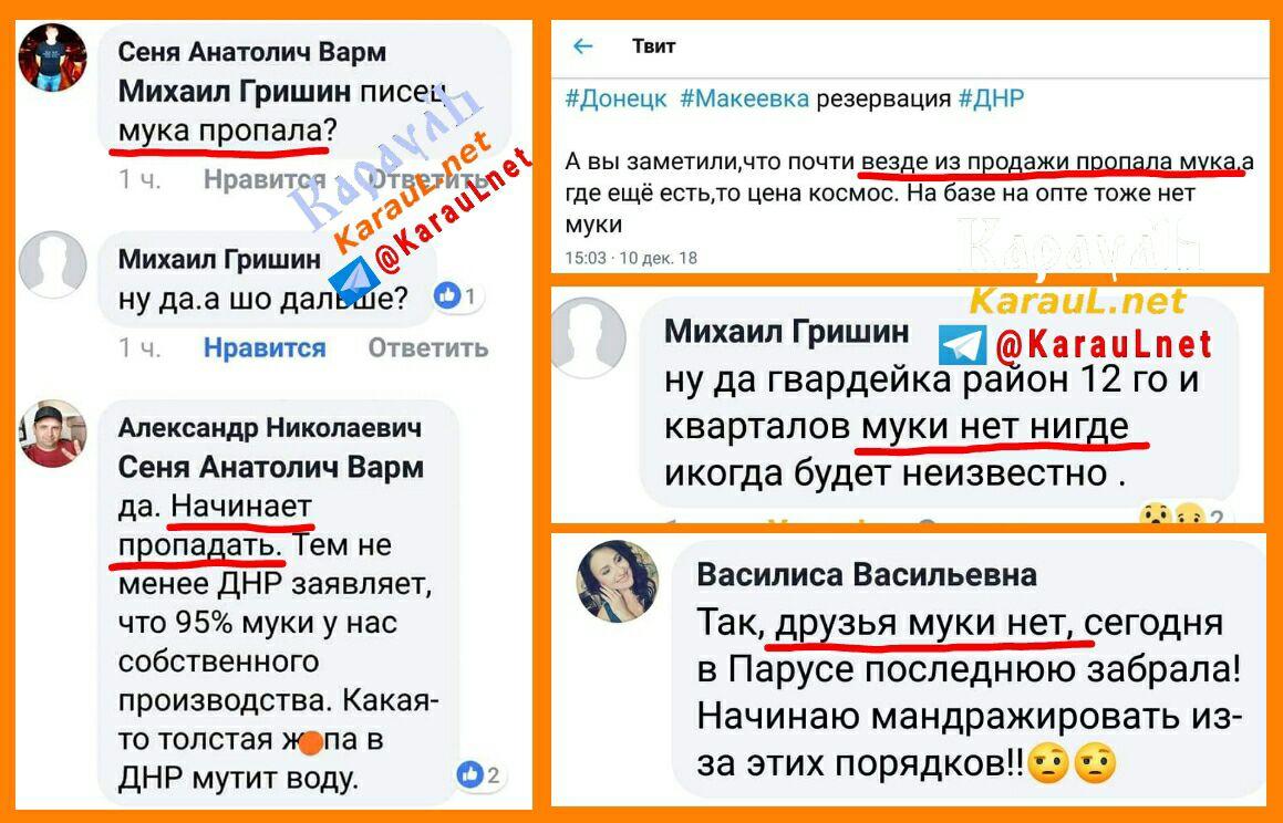 "Какие кретины сейчас управляют Донбассом. Или опять на Москву и гумку расчет? При этом, мин МЧС Кострубицкий остался на своей должности. Задайте ему вопросы теперь, где мука? Пусть мин агропромыш тоже ответит. Пусть ответит Ананченко, Пушилин"