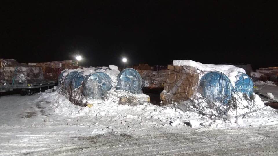 "Граждане! У нас полный караул, ахтунг и капут в аэропорту Борисполь! На этих несимпатичных фото - экспресс грузы которых тут не должно быть никогда! Не должны неделями лежать под снегом документы, диппочта, партии товаров, посылки и запасные части к производственным линиям, и т.д. это десятки тысяч отправлений.