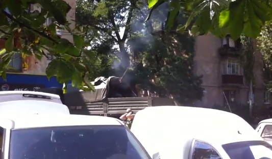 Журналист Денис Казанский поделился видеозаписью, сделанной в Шахтерске в 2014 году, передает Час Пик. На кадрах видно, как боевики палят из миномета, установленного в кузове машины, пряямо посреди города.