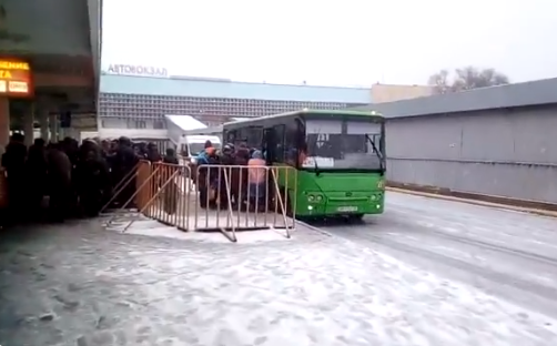 В соцсетях появилось видео, снятое на автовокзале оккупированного Луганска перед отправлением автобуса, едущего на КПВВ.