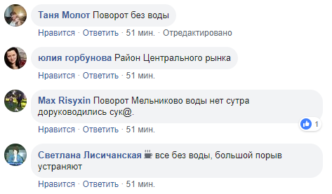 Чаще всего вода пропадает в кранах жителей района РТИ, но на этот раз проблема коснулась Пролетарска и некоротых центральных микрорайонов. В местном сообществе в Фейсбуке лисичане пишут, что вода с утра отсутствует в Пролетарске, на повороте Мельникова, в центре нет воды возле центрального рынка, "Сильпо", "Джамили", в районе "подземгаза".