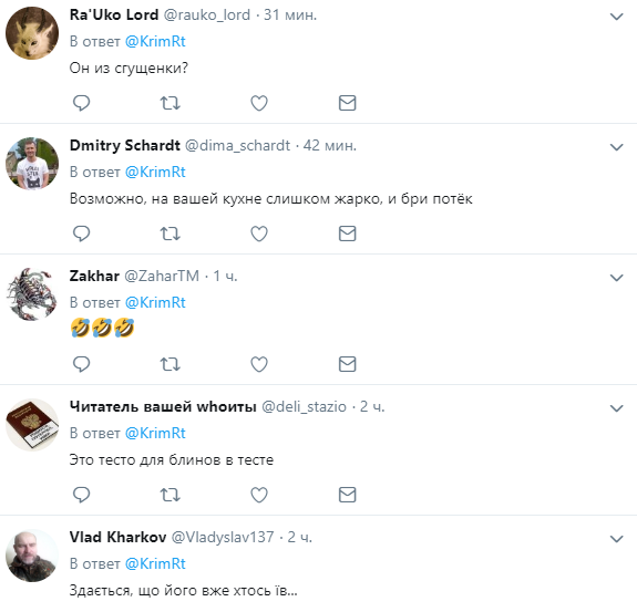 После ТАКОГО сырка мало что вообще испугать может! pic.twitter.com/lqH9lXAYnU— RoksolanaToday&Крым (@KrimRt) 24 февраля 2019 г.
