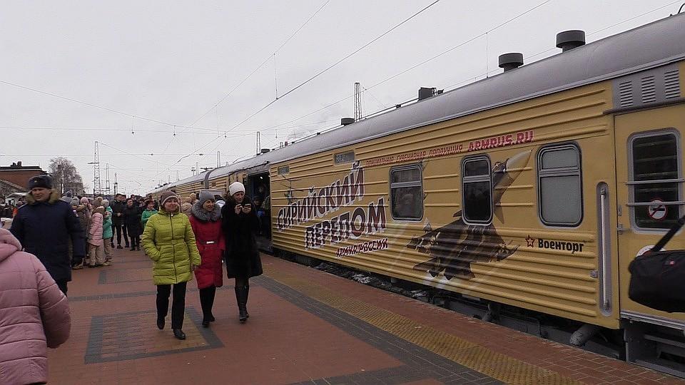 Начиная с 23 февраля, "сирийский поезд" колесит по всей России. По пути в Крым состав на некоторое время "застрял" на подступах к Керческому проливу, поскольку паромная переправа не работала из-за шторма. По этой причине выставка в Керчи, которая должна была открыться 1 марта, была перенесена на день вперед.