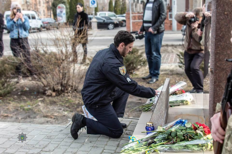 Сегодня, 14 марта, в Северодонецке сотрудники патрульной полиции Луганской области почтили память погибших добровольцев.