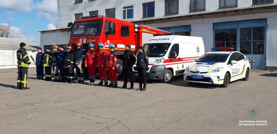 В Лисичанске Луганской области патрульные полицейские и сотрудники ГСЧС отрабатывали действия в случае возникновения чрезвычайной ситуации во время выборов.