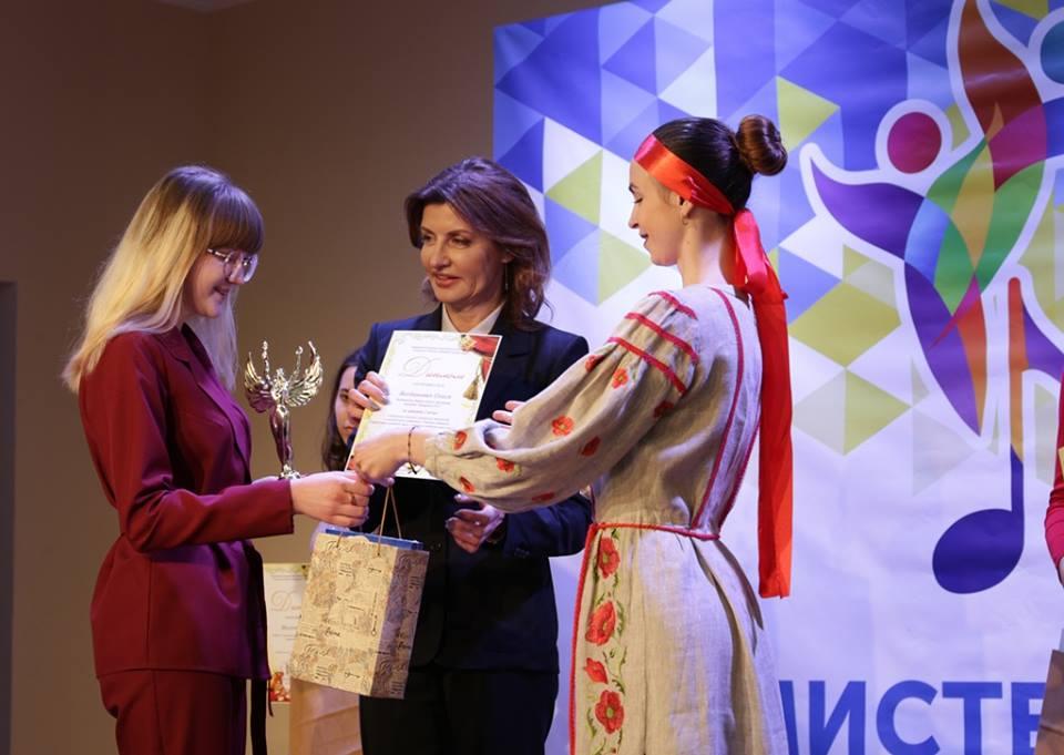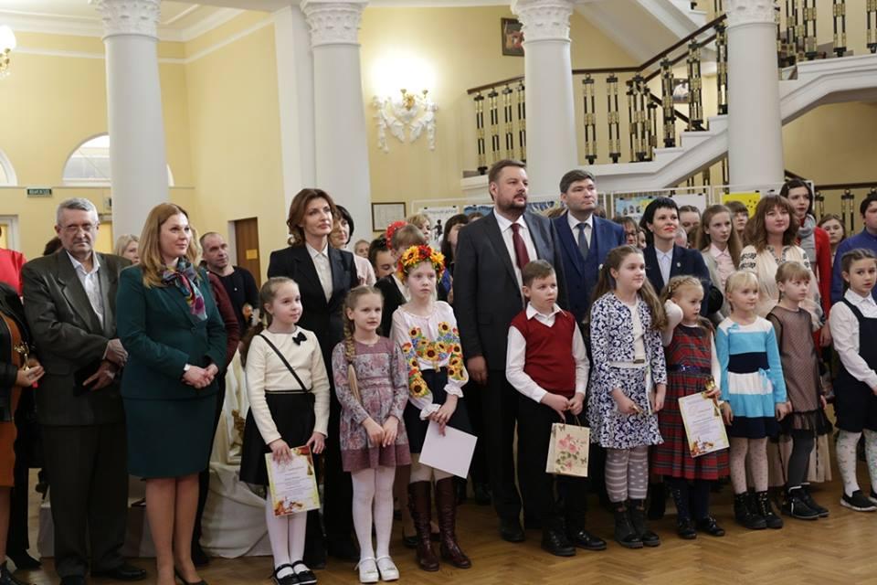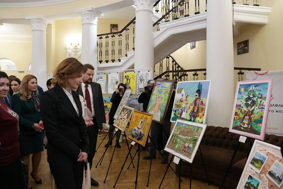 Кроме того, в помещении театра Марина Порошенко осмотрела выставку художественных работ учащихся «Волшебный мир искусства» и вручила награды победителям.