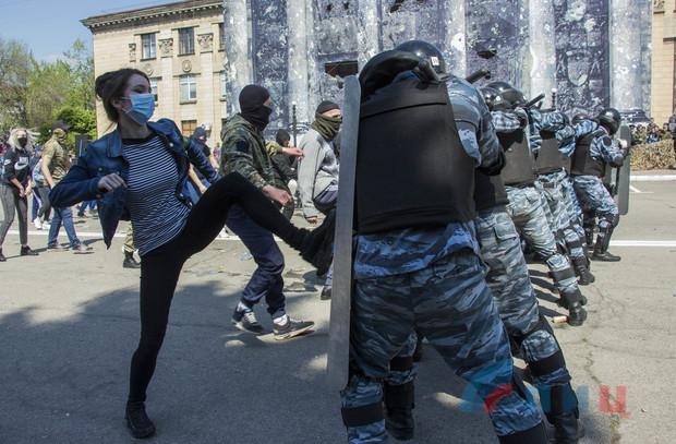 В оккупированном Луганске местное "МВД" устроило реконструкцию штурма Рейхстага и событий на Майдане в Киеве.