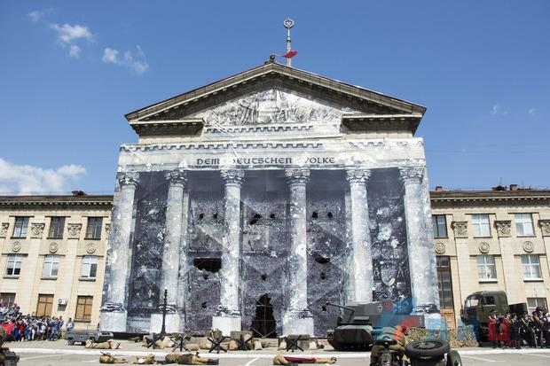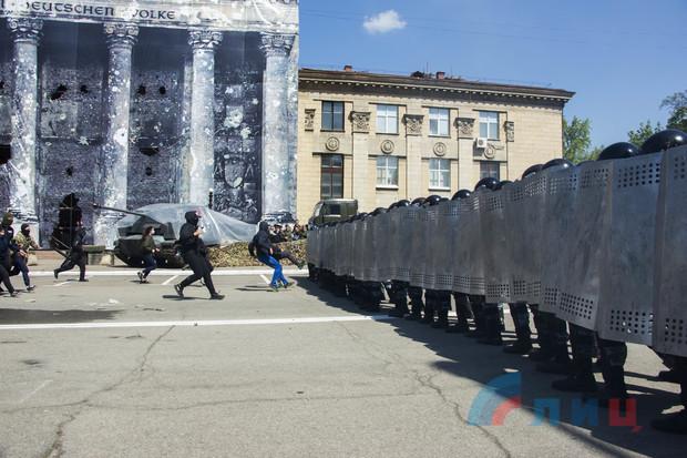 Здание Института культуры и искусств (ИКИ) Луганского национального университета (ЛНУ) имени Тараса Шевченко было задекорировано под Рейхстаг, рядом установлен макет немецкого танка. Реконструкторы устроили условный "подрыв" танка специально обученной собакой, затем был реконструирован ожесточенный бой советских солдат с немецко-фашистскими захватчиками, после чего на крыше "Рейстага" водрузили флаг.