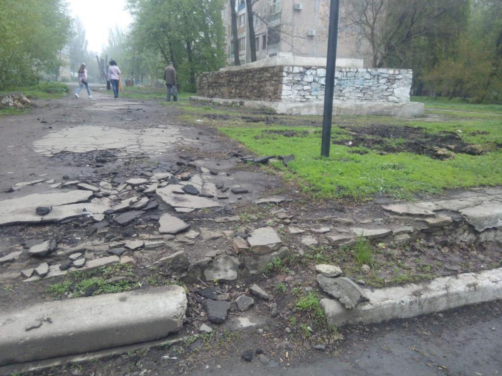"Танк уехал в Луганск на парад, оставив местным жителям перед 9 мая пустой постамент, разбитый тротуар и ступени, а вместо цветов на газоне - следы от шин", - говорится в публикации.