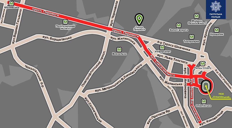 12 мая с 9:00 до 15:00 в Киеве, в связи с проведением марафона, будет действовать перекрытия движения транспорта на следующих участках дороги: