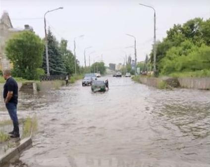 Автолюбители города Лисичанска Луганской области крайне возмущены отсутствием помощи по ликвидации потопа в результате проливных дождей на улице Красная, в районе разрушенного содового завода.