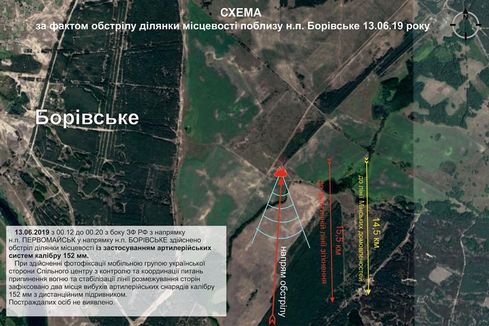 13 июня примерно в 00:30 вооруженные формирования Российской Федерации по направлению населенного пункта Первомайск в направлении восточной окраины населенного пункта Боровское совершили обстрел с артиллерийской системы калибра 152 мм.