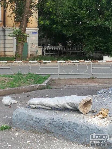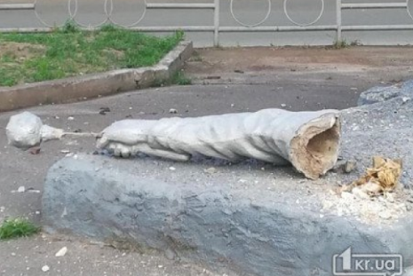 На опубликованных фото видно, что правая рука, в которой гетман держал булаву, рухнула к подножию монумента.