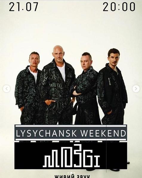 "Хедлайнерами Lysychansk Weekend станут: Mozgi, Kazka и Alyosha. Нереальные эмоции, живая музыка, крутые артисты - все это на Lysychansk Weekend. Приходите и ощутите неимоверную музыкальную атмосферу. Бесплатный вход. Начало в 18:00. Никакой политики - только музыка", - говорится в сообщении.