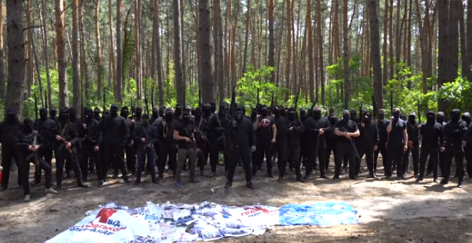 В сети обнародовано видео, на котором запечатлены несколько десятков мужчин в черной одежде и балаклавах, передает Час Пик.