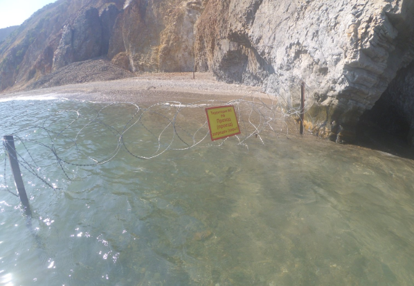 Колючие заграждения уже появляются прямо в море. Соответствующее фото выложила в Твиттере блогер RoksolanaToday, передает Час Пик.