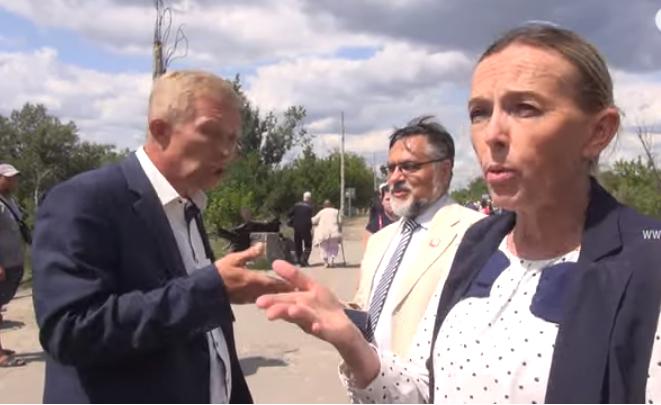 Представители оккупированной части Луганской области на минских переговорах Ольга Кобцева и Владислав Дейнего перешли через разрушенный мост на линии разграничения в Станице Луганской на подконтрольную Украине территорию и заявили, что "Станица Луганская и Счастье принадлежат им".