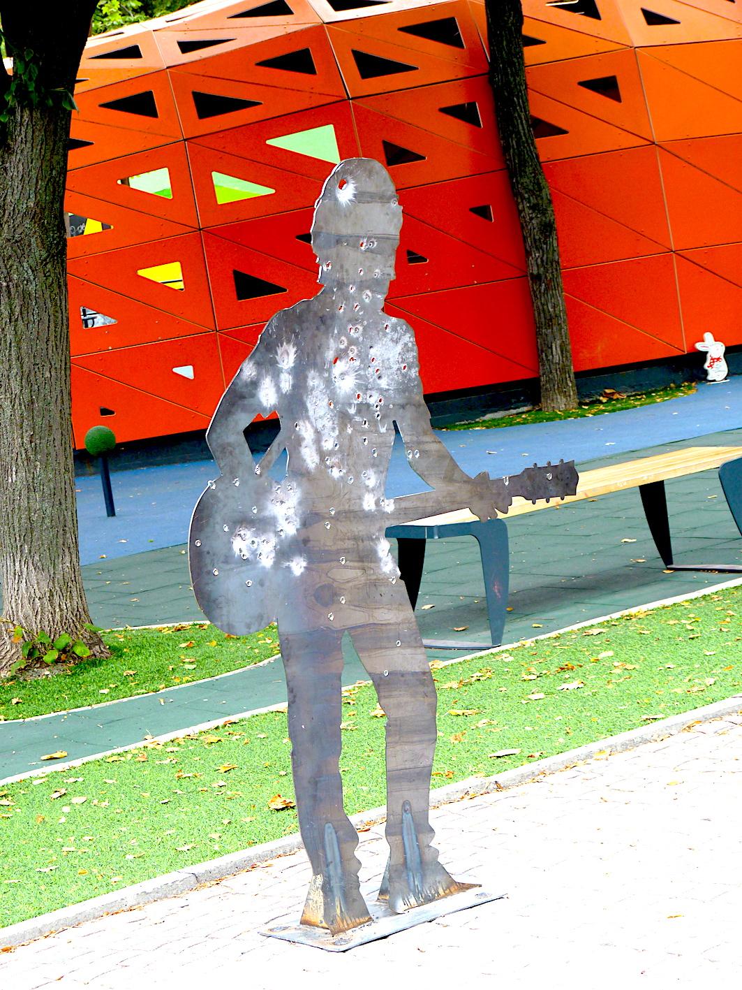 Фигуры персонажей, среди которых бабушка, ребенок, девушка, фотограф, музыкант-гитарист, деловой мужчина размещены под открытым небом, в сквере Героев и на набережной областного центра. Они изображают обычных людей - жителей опаленных войной украинских городов.