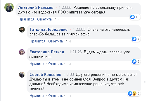 "Решение по водоканалу приняли, думаю что водоканал ЛЭО запитает уже сегодня", - написал в сети Рыжков.