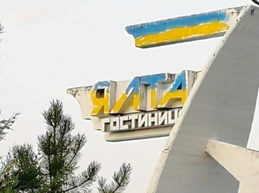 Так, 23 августа в Ялте перекрасили в сине-желтые цвета стелу гостиницы "Интурист".