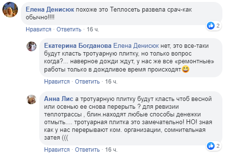 Сейчас же ситуация другая: на тротуаре снимали бордюры. Осведомленные жители Лисичанска пишут, что там будут укладывать тротуарную плитку.
