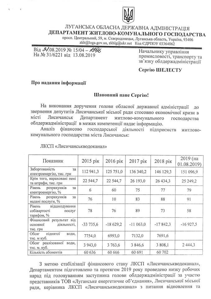 Департамент ЖКХ Луганской облгосадминистрации направил письмо депутатам Лисичанского горсовета относительно экономического кризиса на коммунальных предприятиях города.