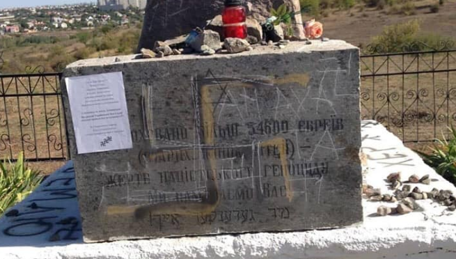Это уже второй случай вандализма. В конце августе в поселке Врадиевка осквернению подвергся другой памятник, посвященный массовому убийству евреев в Николаевской области.
