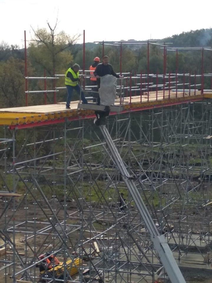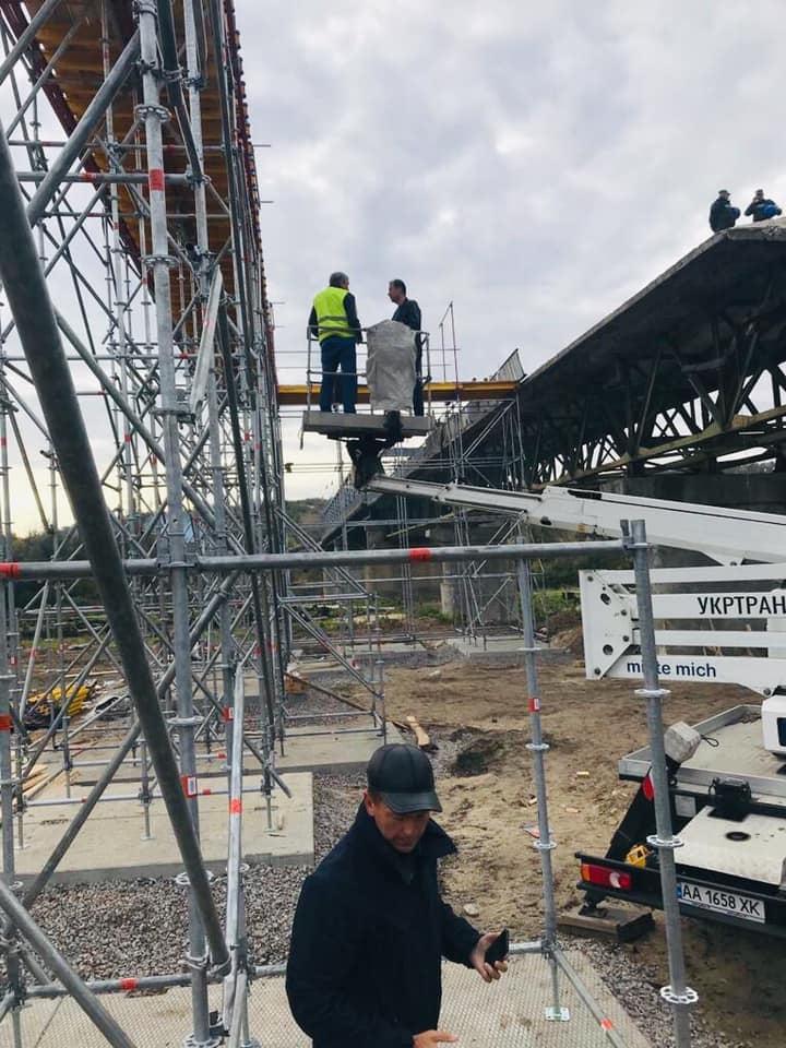 Кроме того, сегодня после осмотра территории пиротехниками, были продолжены работы под разрушенной частью моста работниками ООО «Укртрансмост». Продолжается работа по сбору металлических опор временного моста и укладки древесины на пешеходную часть моста.
