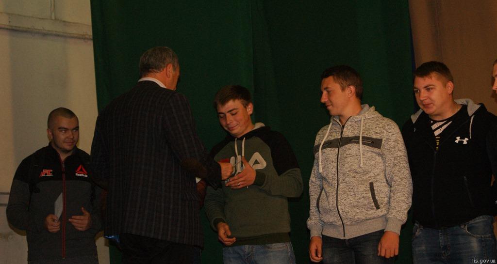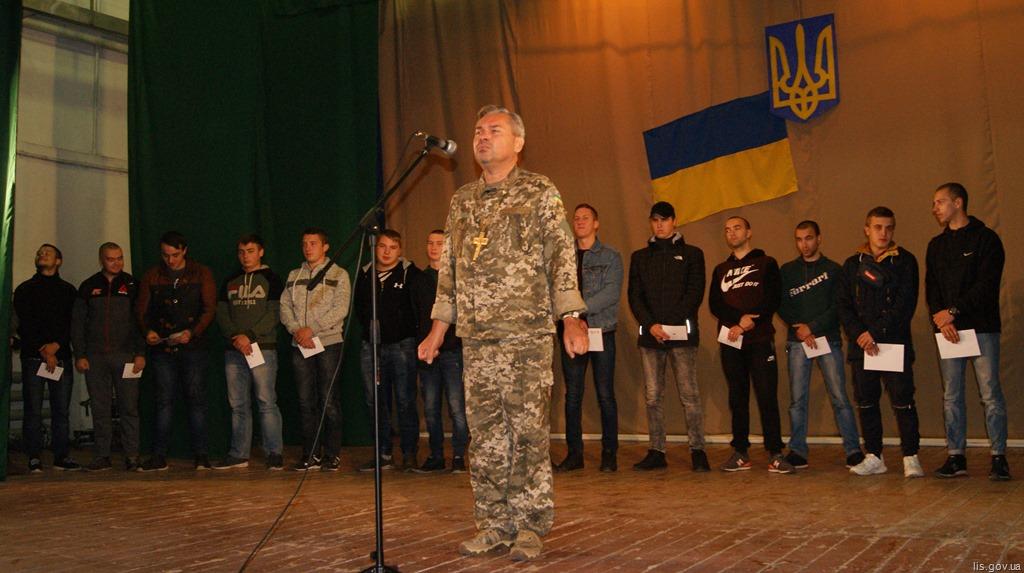 К поздравлениям присоединились Эдуард Гаврашенко и Андрей Винник, а капеллан отец Кирилл благословил на легкую службу каждого парня. От Лисичанского городского совета и Попаснянской райгосадминистрации будущим солдатам были вручены подарки.