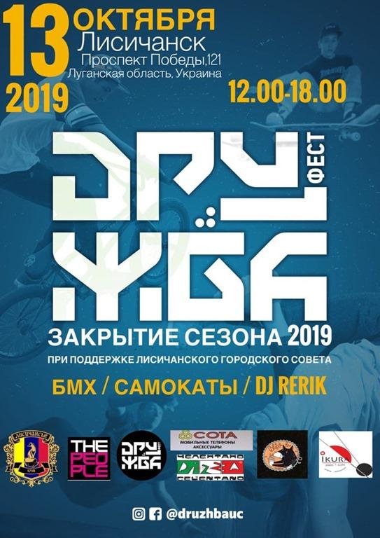 А в воскресенье, 13 октября, в Лисичанске состоится молодежный фестиваль уличных культур "ДружбаФест", приуроченный к закрытию сезона-2019.