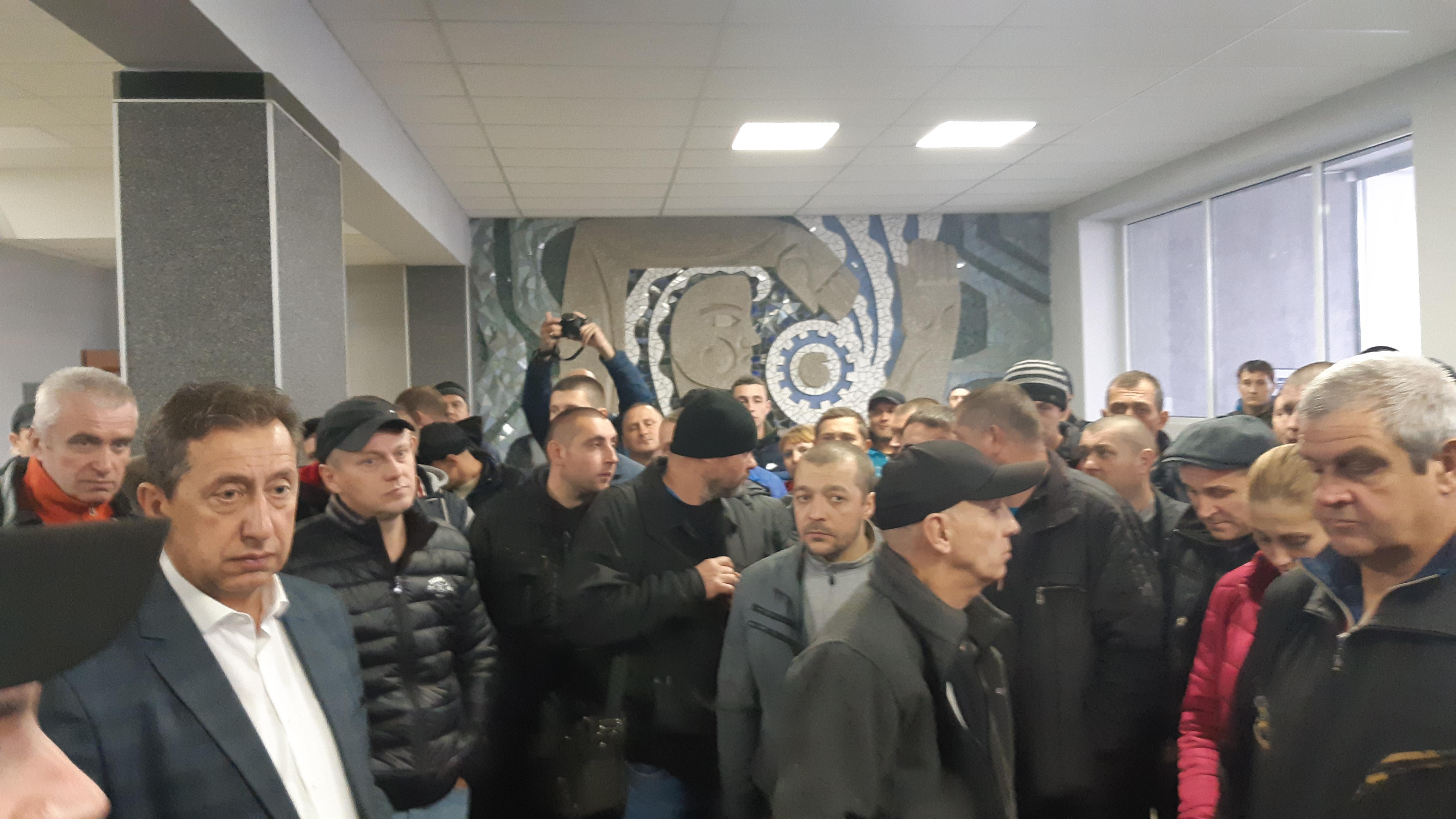 Шахтеры устроили пикет под зданием ЛОГА, после чего встретились с председателем облгосадминистрации Виталием Комарницким.