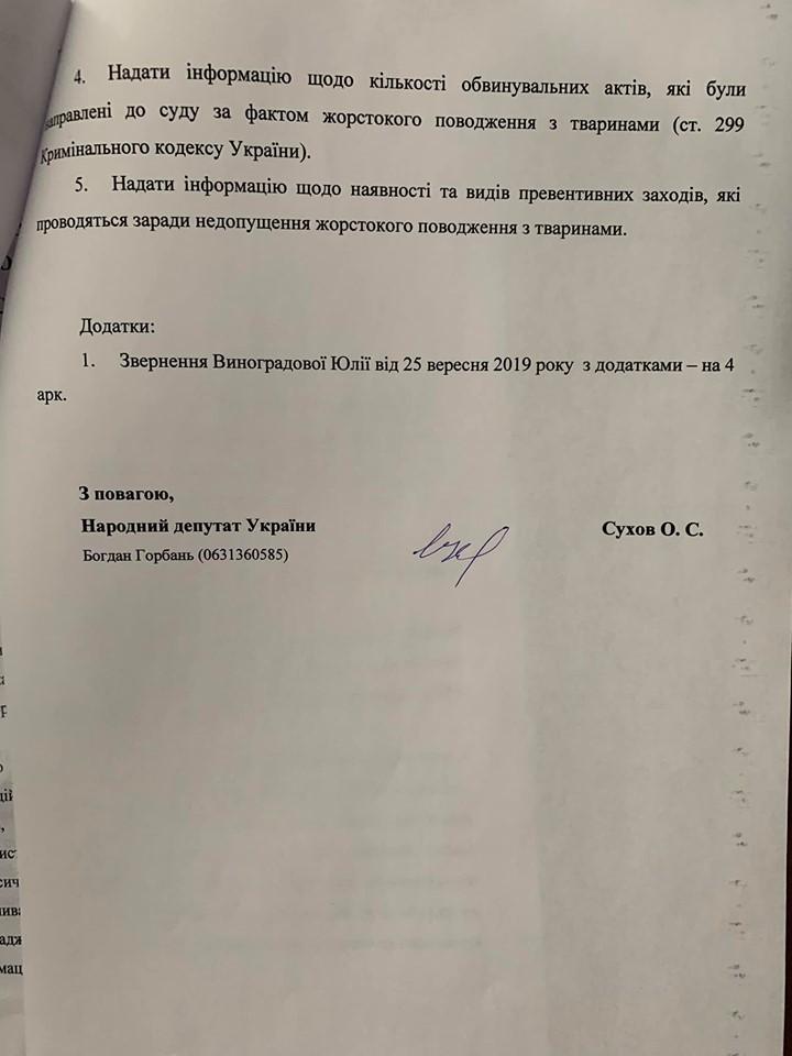Также у нардепа есть претензии к работе правоохранительных органов. Так, на вызов жительницы Новодружеска о жестоком обращении другого местного жителя с собакой, участковый не отреагировал, а напротив, принял сторону обидчика животного.