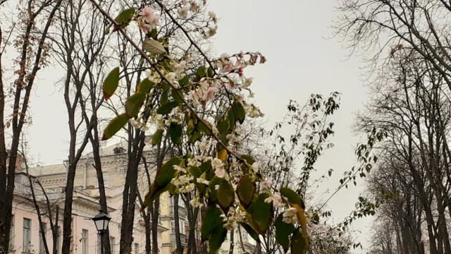 Несмотря на то, что погода уже не радует украинцев, в Киеве расцвели удивительные сакуры. Так, в центре города образовалась целая аллея их цветущих деревьев.