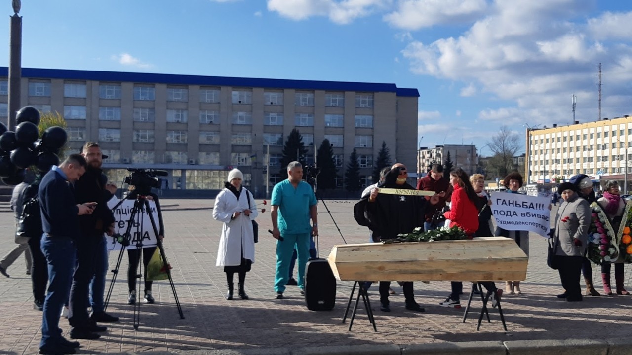Протестовали против исполняющего обязанности председателя бюро Игоря Устимченка и требовали проведения прозрачного конкурса на должность начальника судмедэкспертизы.