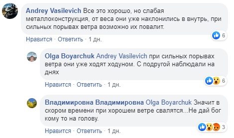 Некоторые комментаторы усомнились в устойчивости конструкции, которая шатается при сильном ветре.