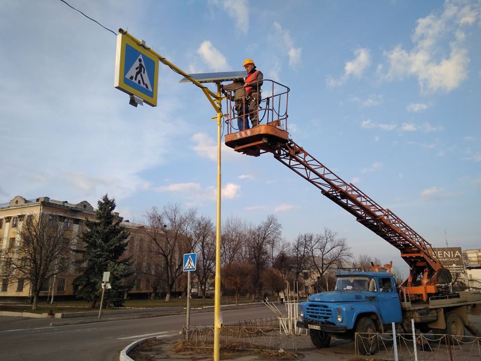 В рамках этого проекта в Лисичанске установлено 8 опор освещения с установкой знаков "Пешеходный переход", с автономными светильниками для дополнительного освещения самого знака и пешеходного перехода, стробоскопом (разработка, которая позволяет привлечь внимание водителя к пешеходному переходу), кнопкой активации стробоскопа и звуковым оповещателем.