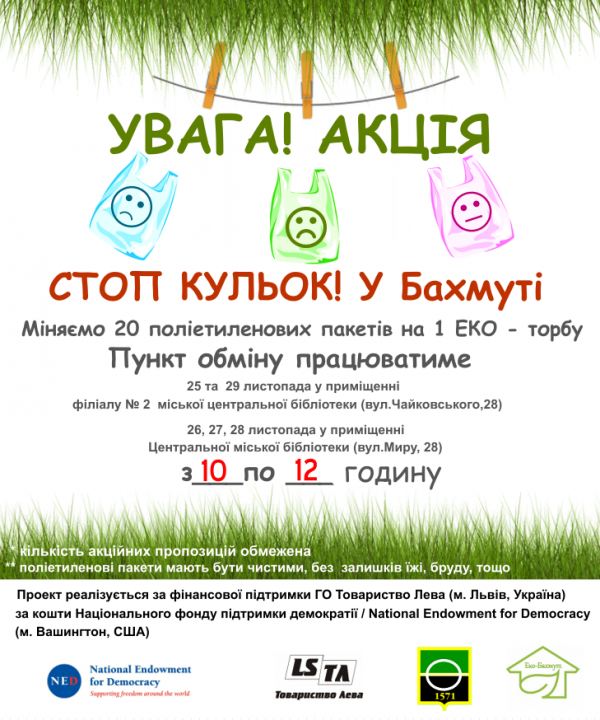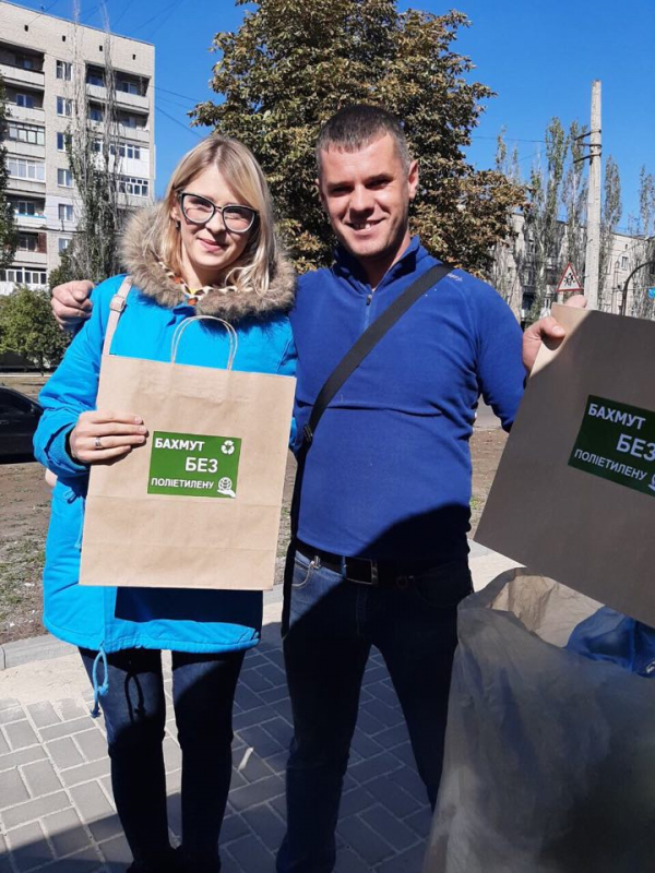 В Бахмуте Донецкой области проходит акция по обмену пластиковых пакетов на экологичные сумки, которая продлится до конца ноября.