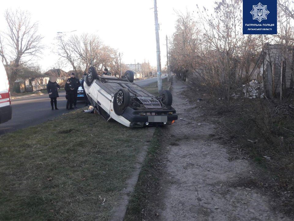 В Лисичанске произошла авария, в результате которой один автомобиль перевернулся. Причина - несоблюдение ПДД. Чудом никто не пострадал.