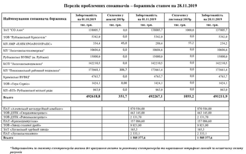 В итоге текущие платежи за электроэнергию проплачены не полностью: за ноябрь на счета энергетиков всего поступило 2840 млн грн. Задолженность по зарплате перед работниками водоканала продолжает накапливаться. К тому же, все счета ЛКСП "Лисичанскводоканал" снова арестованы.