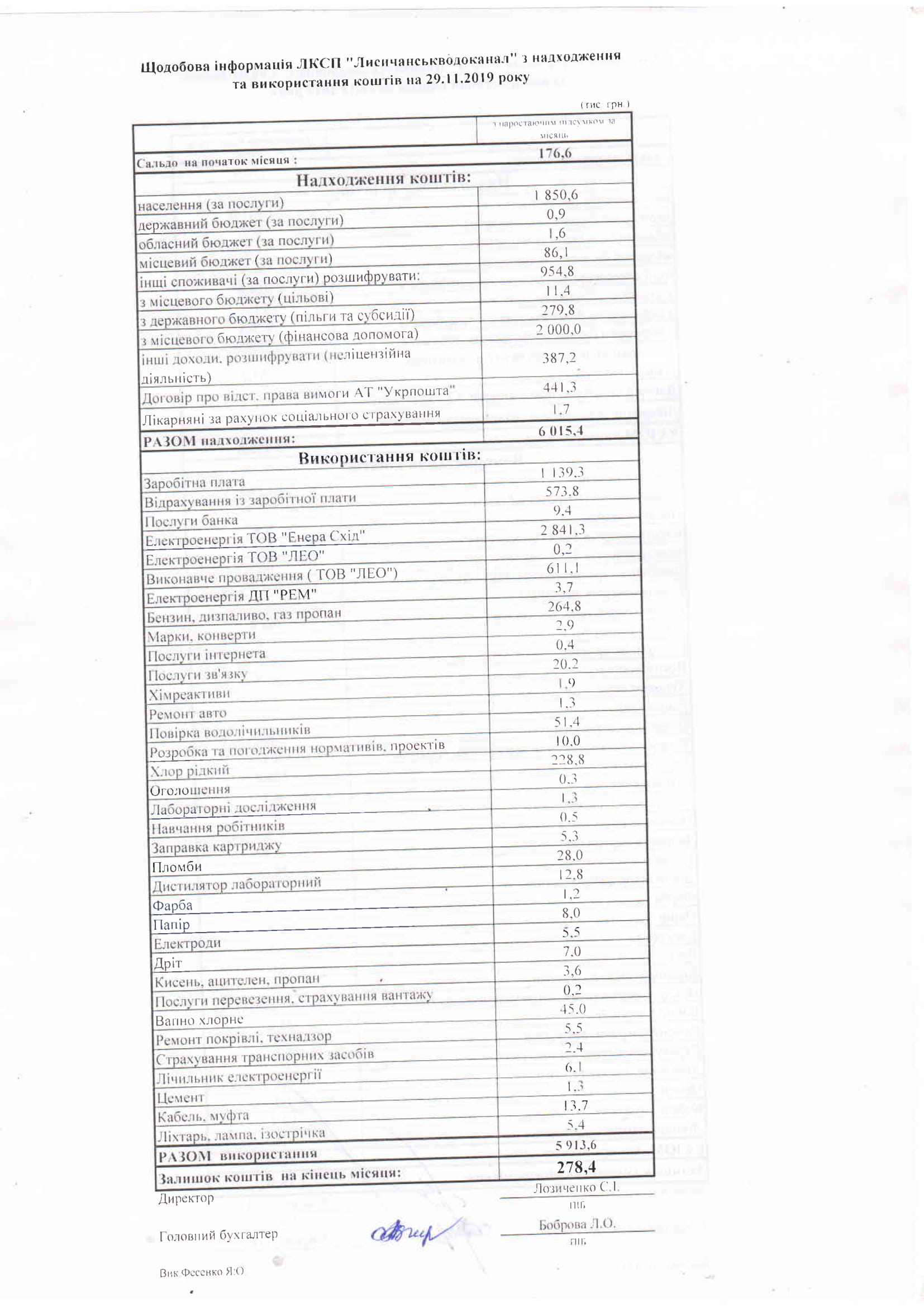 В распоряжении Час Пик есть информация о поступлении и использовании средств "Лисичанскводоканалом" по состоянию на конец ноября.