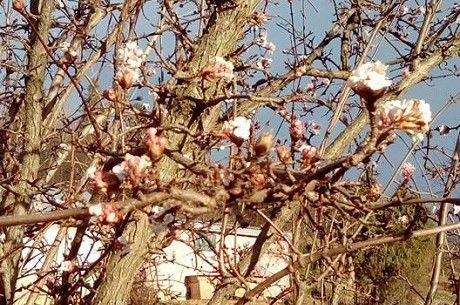 "Калина ароматная полностью расцвела. Магнолия имеет почки 2 см. Орешник пустил "серьги". Яблоки, словно свежие, висят на дереве. Весенний процесс пошел. Пчел ждут не лучшие времена", - пишут пользователи сети.