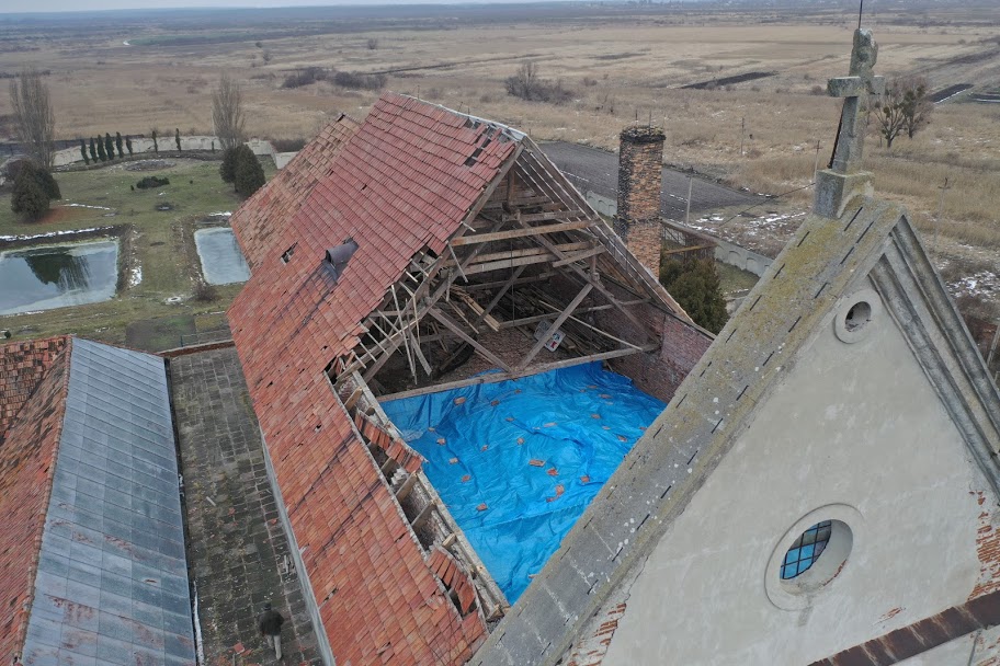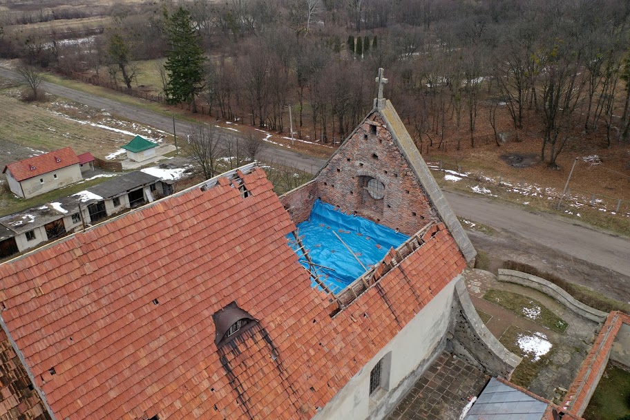 Крышу монастыря накрыли пленкой, чтобы избежать протеканий. Помощник генерального директора галереи искусств имени Возницкого Игорь Зинкевич сообщил, что аварийную часть крыши накроют временной конструкцией.