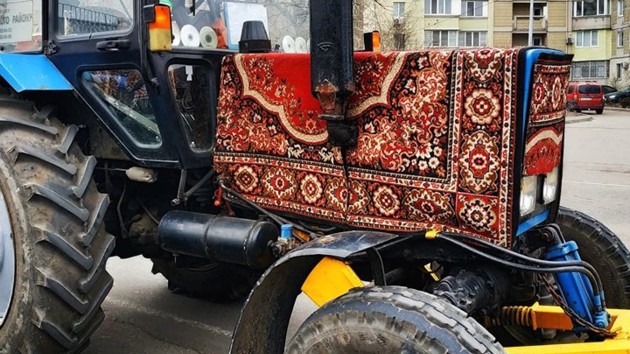 В Киеве, на Харьковском массиве, был замечен трактор с мотором, утепленным ковром, передает Час Пик со ссылкой на украинские СМИ.