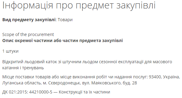 Коммунальное предприятие "Северодонецкводоканал" собирается купить открытый каток за 5,5 млн гривен.