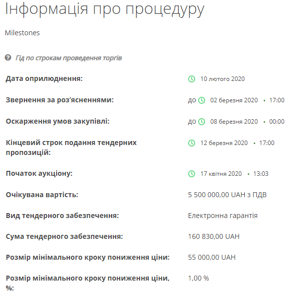 Информация об этом появилась на сайте Prozorro, передает Час Пик.